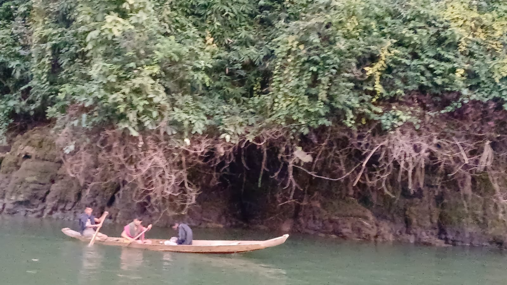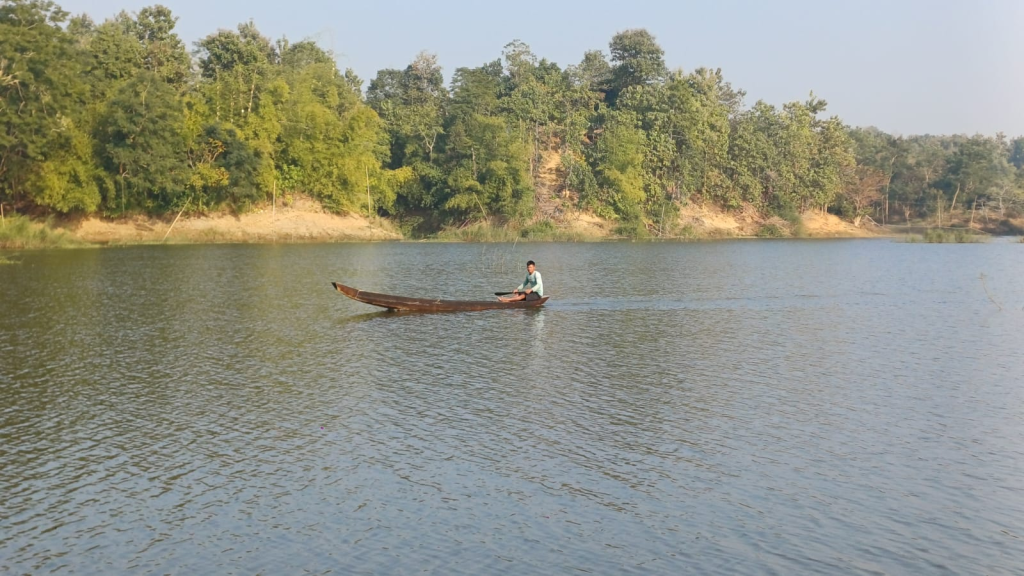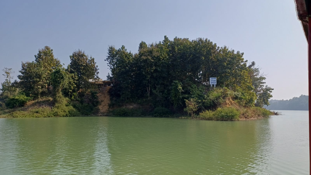 রাঙ্গামাটি শহরের শদিদ মিনার ঘাট থেকে ট্রলারে চেপে কর্ণফুলী হ্রদের বুক চিরে এগিয়ে যেতে সময় লাগে প্রায় আড়াই ঘণ্টা। ট্রলার ছুটে চলে সবুজাভা জলের বুকে। দু’পাশে উঁচু পাহাড়— কোথাও পাহাড়ের গায়ে ঝুলে থাকা টংঘর, কোথাও নিঃসঙ্গ সবুজ জঙ্গল স্তম্ভের মতো দাঁড়িয়ে থাকা নির্জন পাহাড়। কোনো পাহাড়ের পাদদেশে মানুষ কাঠ সংগ্রহ করছে, কেউ মধু খুঁজছে। মাঝেমধ্যে দেখা যায় আদিবাসী মৎস্যজীবীরা মাছ ধরছে— তাদের নৌকাগুলো বেশ আধুনিক, চীনা প্রযুক্তিতে তৈরি।